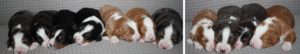 Pippa is Daisy’s sweet and beautiful dark red tuxedo sister. She is completely health tested clear. This is Pippa’s first litter. She has the same genetic panel as Daisy. Below you will find a slideshow of Daisy’s past puppies, and Pippa’s puppies will look very similar. She lives very happily with her ‘hooman’ guardian family and LOVES other dogs. She goes to doggy daycare several days a week and has lots of furry friends. Pippa loves the dog park and enjoys lots of playtime. We know Pippa’s puppies will be just as friendly and happy go lucky as their mama.
